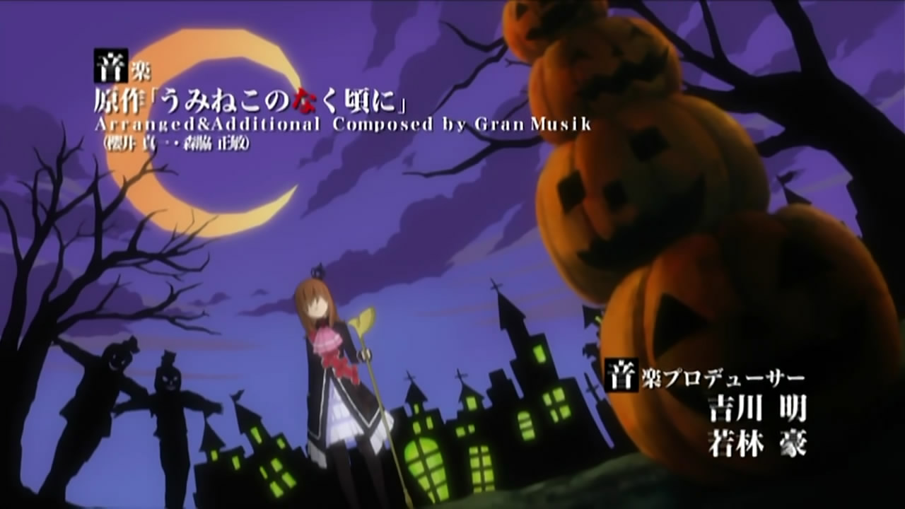 先說說OP,EP4並沒有作為特徵的肖像畫,也因為縁寿並未出席1986年六軒島的家族會議,六軒島上的肖像畫並未「替換」,也因此一開始的肖像畫部分是交替出現(啥)。可惜的是,動畫組沒有再為EP4替換OP場景,不過細部還是有所變更,就如這張真里亞,換了衣服後其實…(以下略