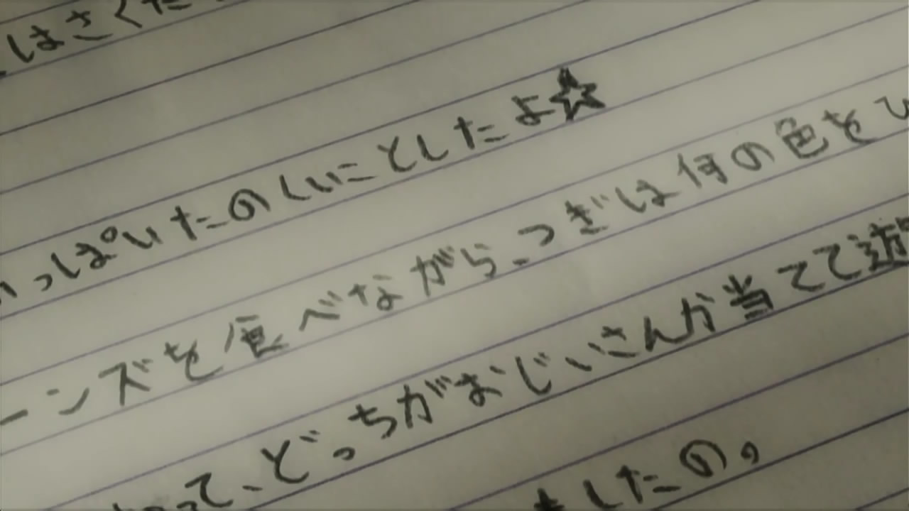 就如同上一集所說,「真實什麼的,總會根據愛的程度而改變。有愛和無愛,所能夠知道的真實也不同。」。從真里亞的事上可以看出,真里亞所記載的「真實」就是樓座雖然沒有太多時間照顧真里亞,但真里亞仍然感受到「幸福」的感覺。但另一方面,緣壽看出的「真實」就是真里亞在此段期間完全感受不到應有的父母愛,樓座只顧著盡快展開一段新感情,真里亞只能以さくたろう作為玩伴,遠離「孤獨」的感覺。到底這是代表緣壽的愛不夠,沒能看見真里亞的真實;抑或是真里亞的愛太多,把緣壽的真實蒙蔽了呢?