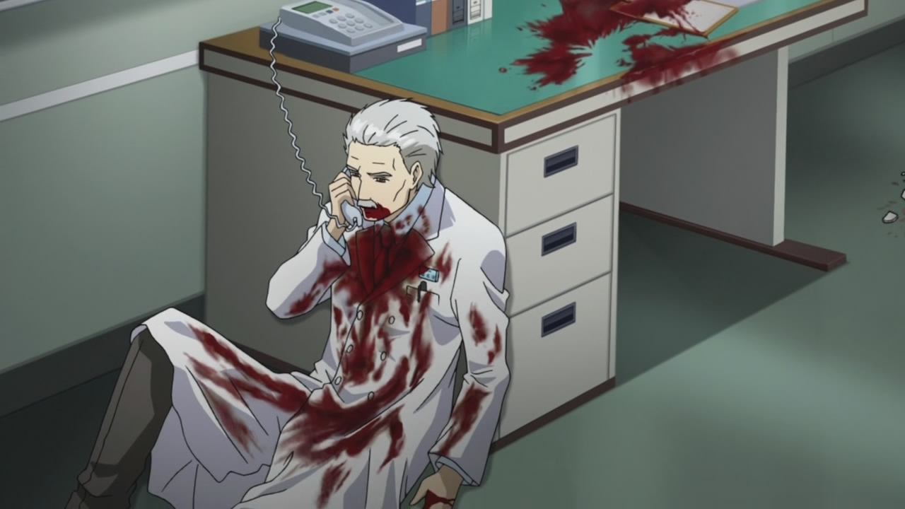動畫的另一個重點,就是院長櫛名田重次被副院長葛西銳二毒殺。到底重次做了什麼違反「戒律」的事呢?答案當然是他交給藥廠(其實只是賢木)的一份「研究文件」…葛西毒殺重次的理由,其實就是與研究文件的內容有關…。