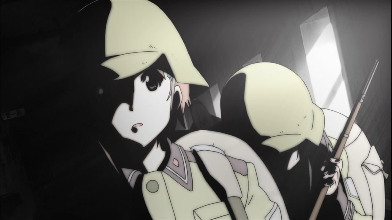 第二集,暫時還是處於「序幕」的部分的樣子吧?可以知道的是,這個位於邊境的第1121小隊,反而是最受到冷落的一隊,與一般狀況的「邊境」不太相同。這個落差之所以出現,可能就是因為隔了一個斷崖的旁邊就是ノーマンズランド的關係吧?劇中所說的『イデア文字』(大家也知道事實上是日語)又會是…?