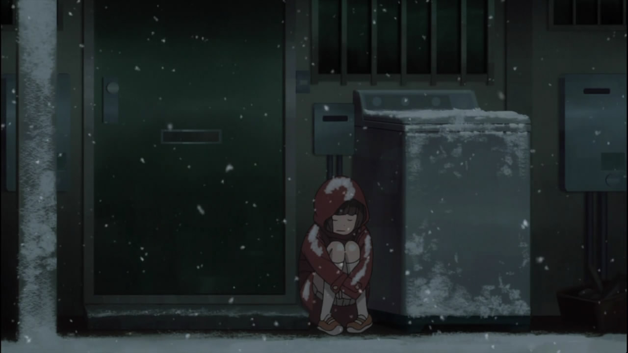 不管如何,這一集的重點還是落在あかり身上,雖然是超自然現象,似乎あかり做的事還是擁有一定的質量(?),看著那些隨著瞬移出現的雪,真有點六月飛霜的味道(?)。此外這一集還出現了一個名詞,所謂的「騷靈現象」(ポルターガイスト),簡單來說可能就是相當於人們目擊一些物體在無人觸摸之下到處亂飛,或人們在醒來後發現物品被攪亂、或是被移往別處的一種現象。這一集所表現的騷靈現象,就是洗衣機飛走的一幕吧?(啥)但是另一個有趣的是,あかり在騷靈現象的表現更像是一個雪女,當然這也是跟她在平安夜晚凍死有關係就是了。