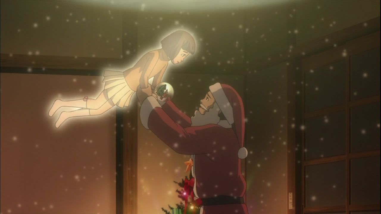 先說說劇情重點的あかり吧。這應該可以說是全劇中數一數二催淚的劇情了,由父親說出あかり死去的原因,就是在於他自身只顧著工作,忽略了整個家庭,真是直接殺死あかり的兇手啊(汗)。雖然是屬於父親的回想,可是卻由あかり的角度出發,這一段還真是讓人感到痛心啊.不過看起來父親已經痛改前非(雖然老實說已經太遲了),看著他用暴力方式(誤)代替文明成為聖誕老人,就足以證明父親是真心希望向女兒贖罪……。