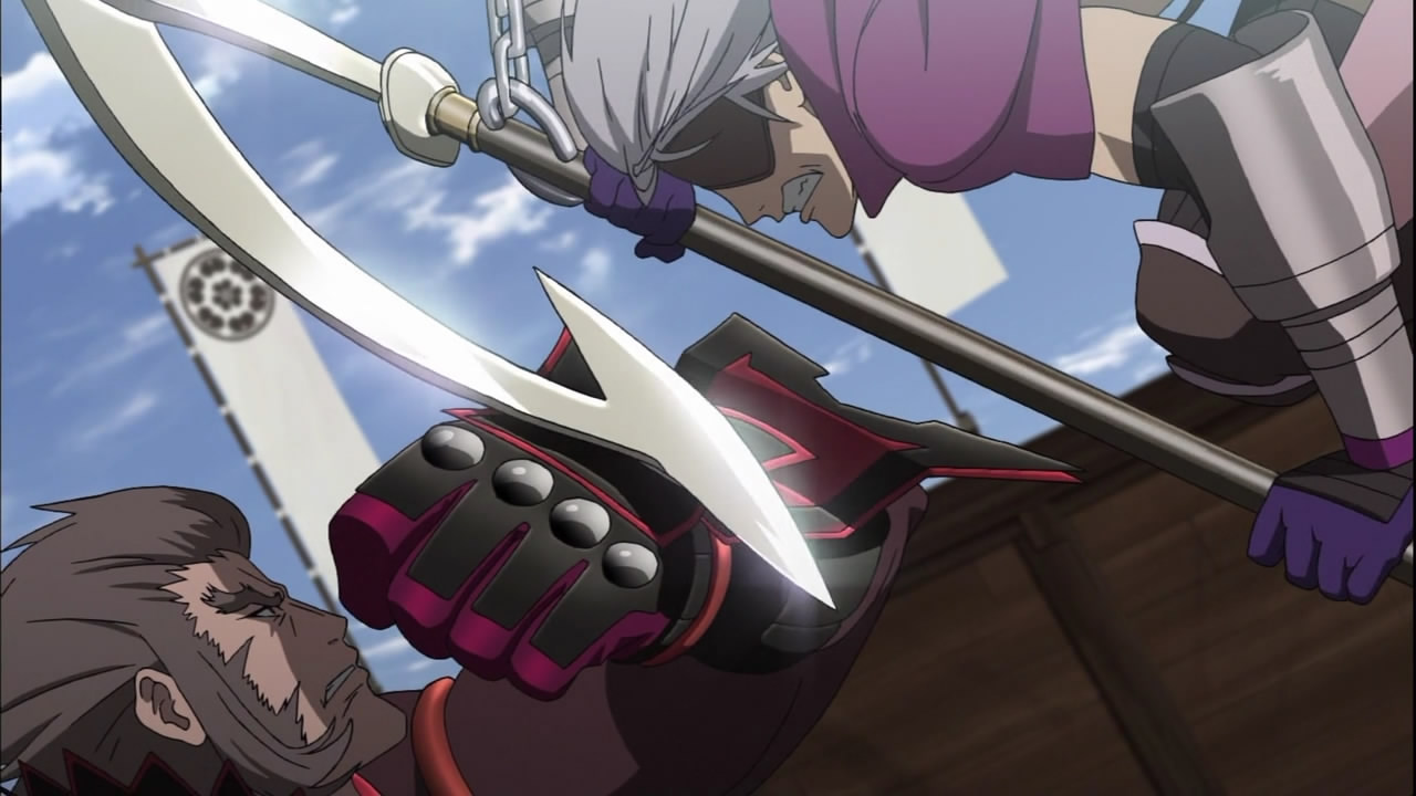 最搞笑的還是真田幸村的亂入,簡直是沒頭沒腦的舉動(喂)。說不能放任不管,實際上去幫忙也只是於事無補,吧。小山田的最期,是不是有著一種對幸村說「要為自己的決定負上責任」的感覺呢?真田無論如何也希望自己去幫助長曾我部,還沒有理會佐渡和信茂的勸阻,信茂最後認同了真田的決定,總有一種不是自己真正想法的感覺。不管如何,下一集就到九州了,真的是宮本武藏嗎!(啥)