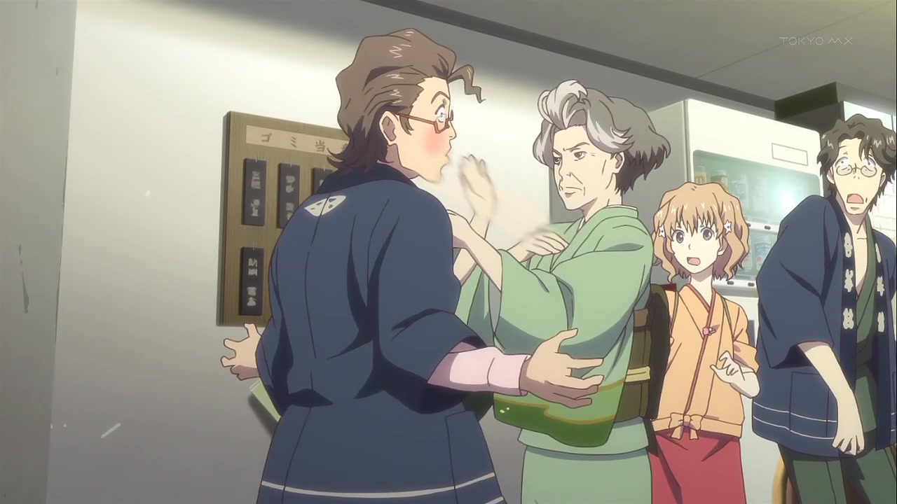 先說說皐月的行動吧。可以說一句就是「這就是出了社會工作的人的魅力」吧,處事上還是老樣子地不留情面,就算面對的是母親、或是自己的女兒,原則還是不能打破,可是所想的已經比緒花想像中來得更遠,這也可以說是皐月與縁兩人最大的分別吧?一直留在喜翠莊協助旅館事務的縁,雖然還算是打理得有板有眼,但相比身為姊姊的皐月來說,縁的能力就顯得非常地不足,這,這也是沒辦法的事,吧?這就是一直封閉在固定地方與往外闖的絕對分野。