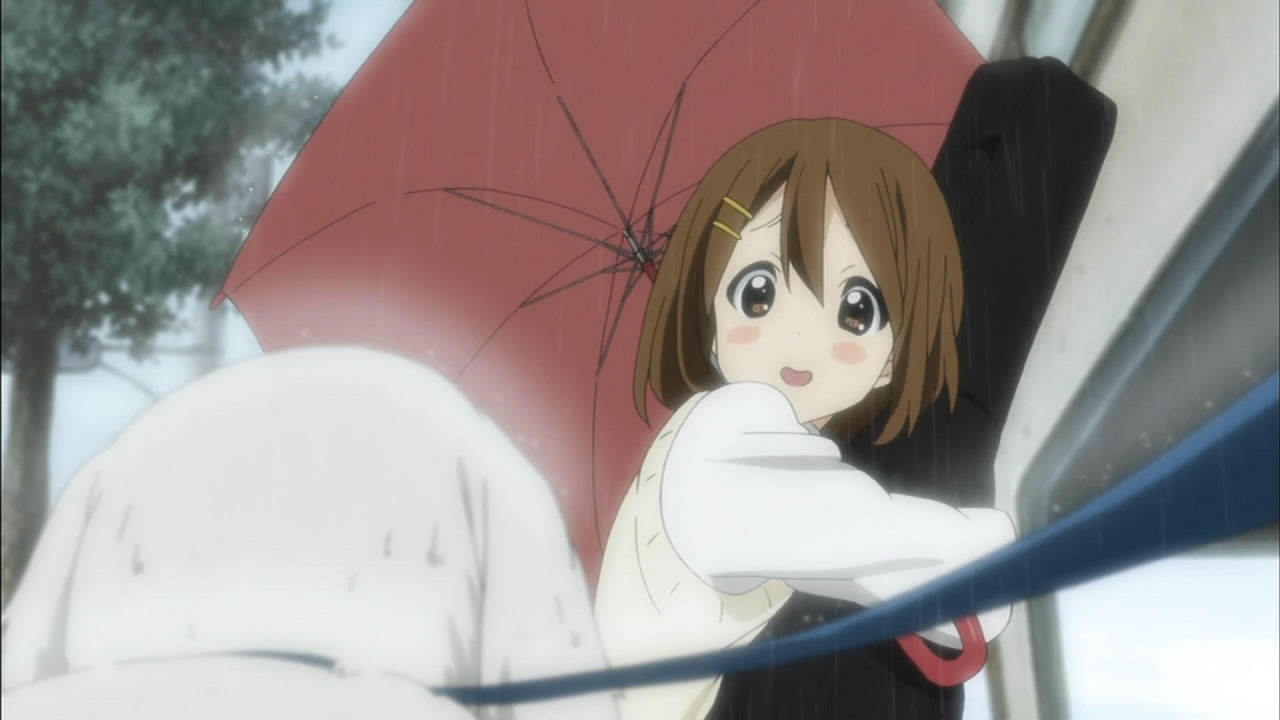 梅雨季節到來。在這個一天到晚都是在下雨的時期,對於下雨的感覺雖然是見仁見智,可是卻一定沒人會喜歡那種潮濕的天氣,每天黏答答的怪不好受吧?樂器也是同樣。為了要保護心愛的吉太免受黏濕之苦的唯,終於挺身而出(用身體擋住雨水)了…!