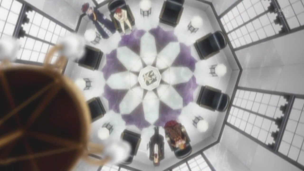 一直也覺得這樣互對坐著很怪,好歹原作中是以茶會的形式進行,有一張餐桌也不行嗎XD"。