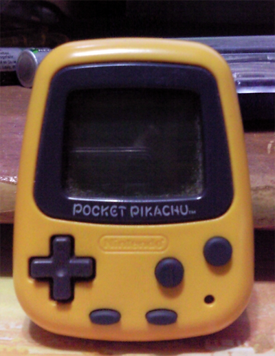 這個叫作ポケットピカチュウ的小型遊戲機,是任天堂於1998年3月乘著たまごっち熱潮和pokemon熱潮下的一個產品。雖然本身的概念的確很像たまごっち,「玩家」可以透過小螢幕中看到ピカチュウ每天的生活,而且也可以跟牠遊玩,但遊戲的進行方法與一般的たまごっち不同,而且ピカチュウ是以「朋友」身分與玩家遊玩,所以這個小型遊戲機是以「步行」來增加與ピカチュウ的友好度,大致上就是跟小智每天也帶著ピカチュウ出外遊玩一樣的概念吧