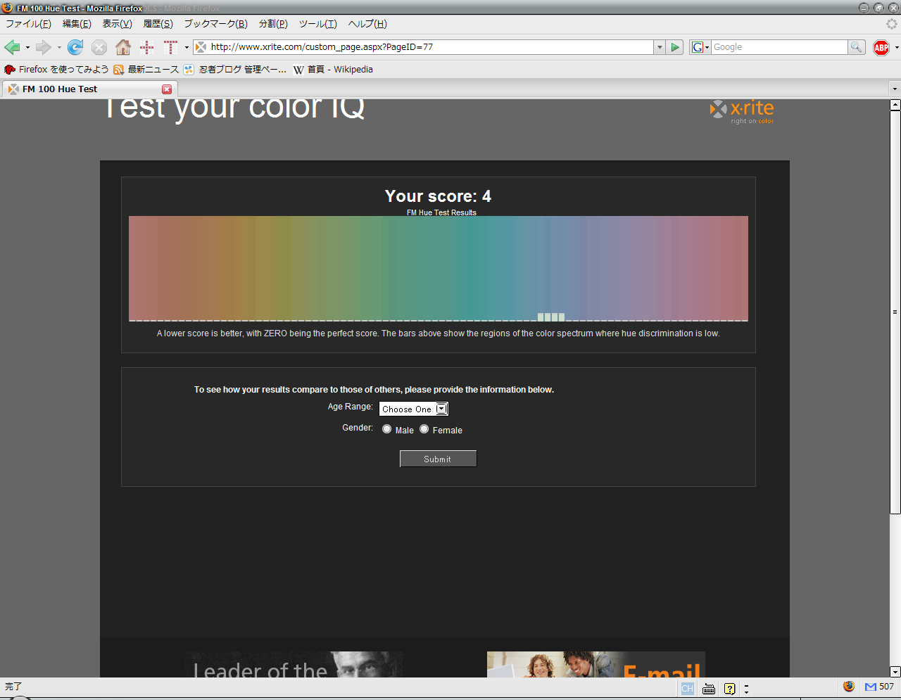 不過,眾所周知電腦的顏色出來得準不準很取決電腦螢幕的能力,在這個情況下當然,是傳統的CRT螢幕的質素比現在流行的LCD螢幕來得更好,到底這個測驗是真的測試各位的Color IQ,還是說測試你調電腦螢幕的顏色調得準不準呢…(茶)